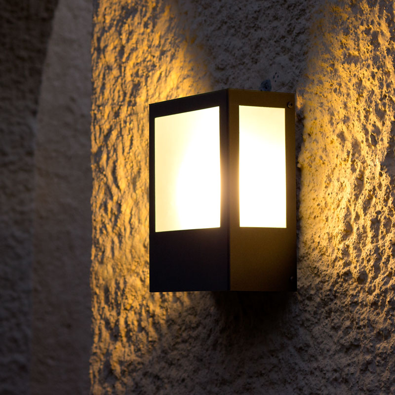 Aplique para jardín Prisma 102, lámpara para jardín pintado con pintura poliester 100%, y polimerizado a 210ºC para garantizar una máxima durabilidad de oxidación en ambientes salinos. IP-44. Lámpara de jardín de alta calidad, indicada para jardines, hoteles, casas de turismo rural y campings.