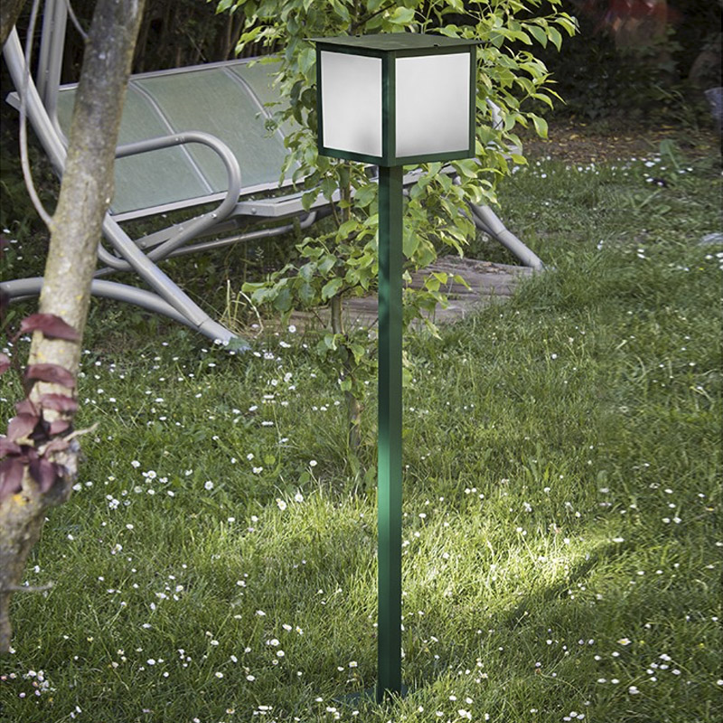 Baliza de jardín Cubus 502, lámpara para jardín pintado con pintura poliester 100%, y polimerizado a 210ºC para garantizar una máxima durabilidad de oxidación en ambientes salinos. IP-44. Baliza de exterior de alta calidad, indicada para jardines, hoteles, casas de turismo rural y campings.