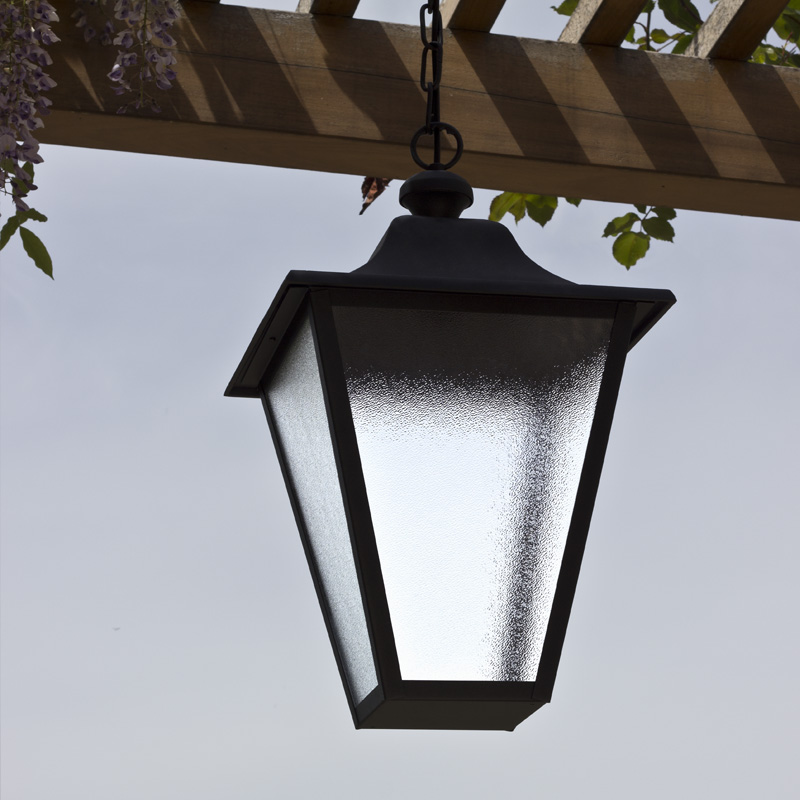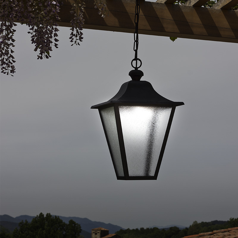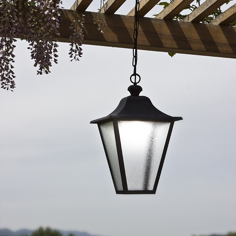 Lámpara colgante de exterior para jardines, terrazas, hoteles, casas de turismo rural y campings.