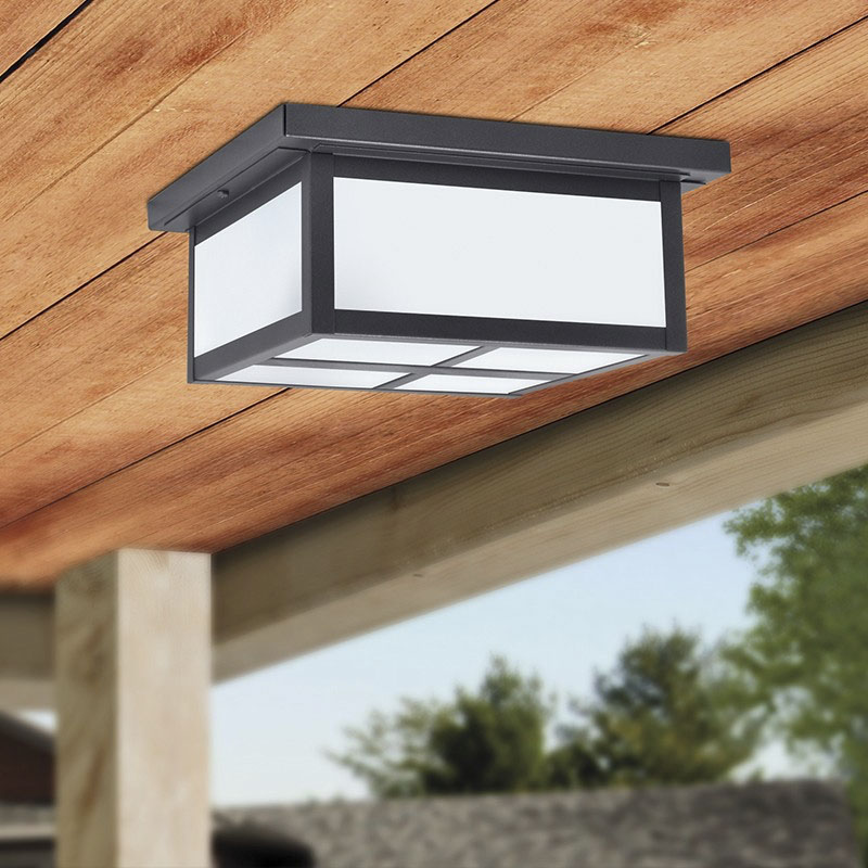 Lámpara Plafón para techo Cubus 701, lámpara para techo pintada con pintura poliester 100%, y polimerizado a 210ºC para garantizar una máxima durabilidad de oxidación en ambientes salinos. IP-43. Plafón de exterior de alta calidad, indicada para jardines, hoteles, casas de turismo rural y campings.